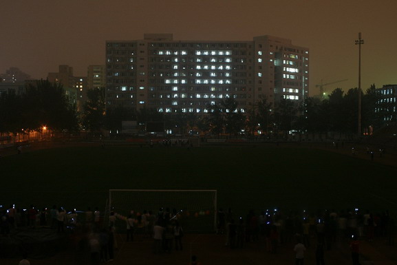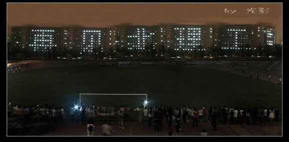 为了更好的宣传“再见米兰”这个新的版块,飞翔论坛一些即将毕业的“版主”们自发的筹备了“再见米兰”新一号楼亮灯行动,在许多低年级学生的支持和配合下,为所有毕业生制作了一份特别的礼物。