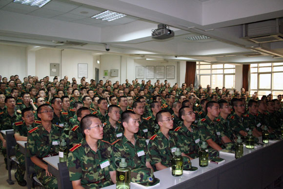 根据今年的军训计划,7月15日开始全旅军事理论课的学习,来自国防大学的曹东光大校、贾南征大校、房兵中校、赵峰中校、陈洲辉中校等九名教官为全体参训学生进行了为期12天的精彩讲授,于八一建军节之前结课。课程内容纵古越今,横跨国内国外,让参训学生从中领略军人风采,感悟国防情怀。丰富多彩的内容和教官们富于激情的讲解,使全体参训学生印象深刻、受益匪浅。