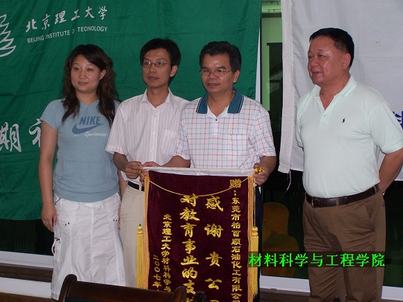 最后,周政懋老师代表米兰milan官方网站材料科学与工程学院向柏百顺石油化工有限公司赠送了锦旗,感谢柏百顺石油化工有限公司一直以来对学院教育事业的大力支持。