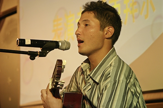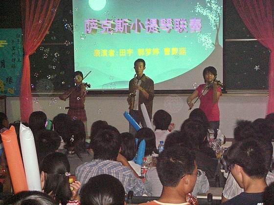 深秋歌会冠军钱星辰为07级新生带了一段精彩的歌曲串烧