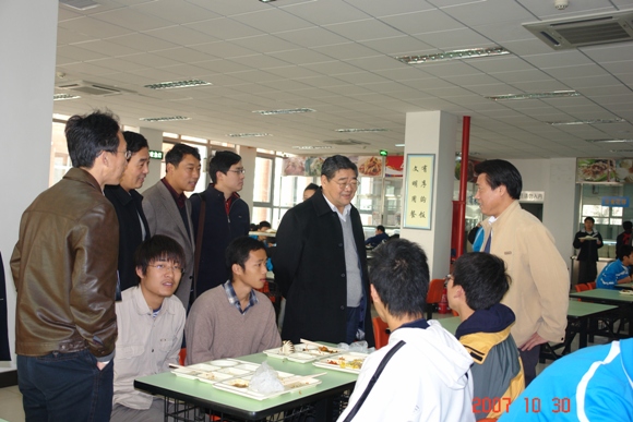 临近中午时分,焦书记一行来到学生食堂,检查了饭菜质量和价格,并与就餐学生亲切交谈,听取学生对伙食工作的意见,并要求有关部门针对学生提出的问题进一步改进工作。