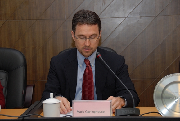 Mark Garlinghouse副总裁代表汤姆森科技信息集团向学校赠送开通仪式纪念牌。