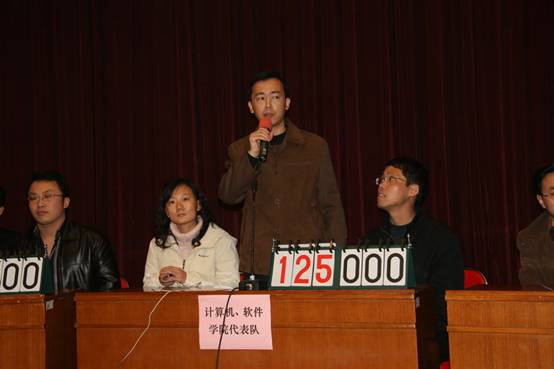 计算机、软件学院工会精心组织,派出了林永钢、张欣、张文耀、林婷、宋红五名选手参赛,并组织了10多名老师和学生观众。林永钢、张欣、张文耀这三位上场的主力队员都是战斗在教学科研第一线的青年教师,他们在时间紧、个人工作任务十分繁重的情况下,利用个人休息时间精心准备,认真领会,掌握了全部的竞赛内容。