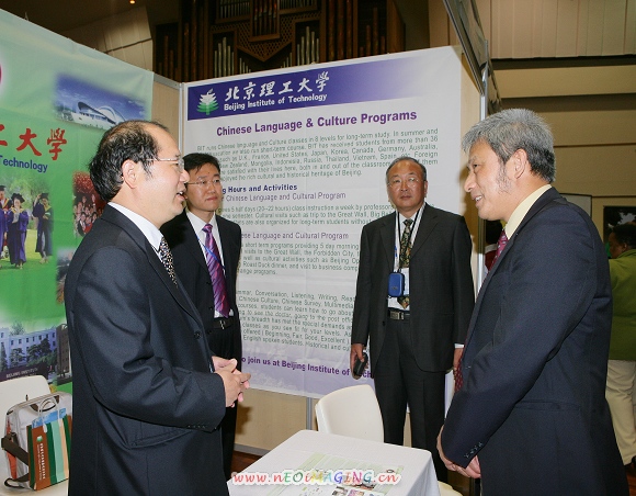 南非教育部国际司司长Fillis 和中国驻南使馆教育组负责人魏养根参观我校展台