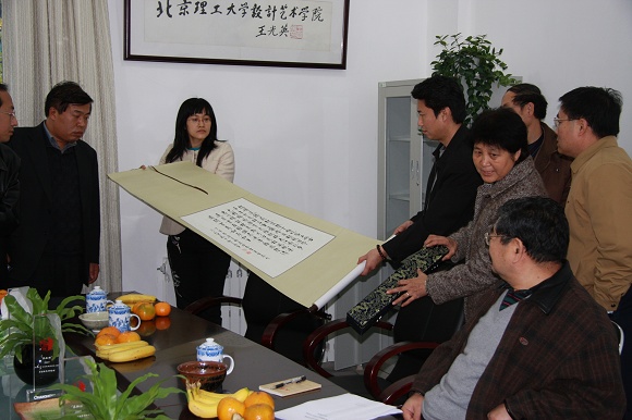 最后学院还向预评估组领导展示了学院接学校任务为每位评估组专家准备的纪念品——张院长亲笔所做的书法作品,得到了领导们的一致认可。