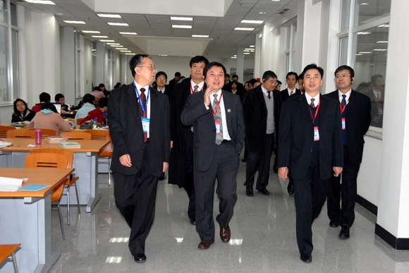 11月14日上午,教育部本科教学工作水平评估专家组成员在学校领导的陪同下来到图书馆考察工作。在图书馆大厅,张永发馆长向各位专家介绍了图书馆概况,在观看了“日新月异的米兰milan官方网站图书馆”的展板之后,专家们实地考察了多媒体阅览室、报刊阅览室和中文自科图书阅览区等,考察过程中专家们在张馆长的讲解下边走、边看、边问。