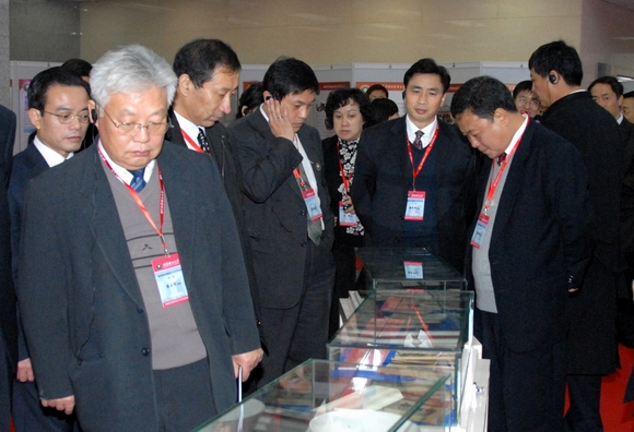 专家组组长谢和平院士查看了馆藏的博士学位论文。