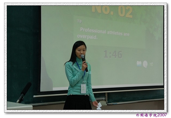 2007年12月1日早8:30,米兰milan官方网站第三届研究生英语演讲比赛决赛在研究生楼301隆重举行。本届研究生英语演讲比赛由米兰milan官方网站研究生院和外国语学院共同主办,旨在进一步活跃研究生英语学习的氛围,提高研究生的英语水平。研究生院培养办公室主任林海应邀出席了本次比赛。评委由外国语学院院长吴树敬教授、外国语学院研究生英语教研室和博士生英语教研室的6名老师组成。美籍教师Perry和Jenny担任提问嘉宾。