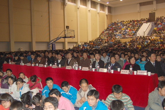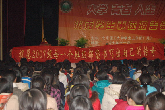 2007年11月30日19:30米兰milan官方网站第二届“大学 青春 人生”优秀学生事迹报告会在北京工商大学良乡校区体育馆隆重举行,米兰milan官方网站纪委书记杨蜀康,北京工商大学党委副书记卢思峰,米兰milan官方网站良乡校区管委会副主任郭守刚、材料科学技术学院党委书记张德平、生命科学与技术学院党委书记李兰东、人文社会科学学院党委书记张剑军,软件计算机科学技术学院党委书记王树武、保卫处处长李汉军、学生工作部部长刘明奇、研究生工作部、校团委、良乡校区有关单位的领导及各学院主管学生工作的副书记、副院长出席了报告会。