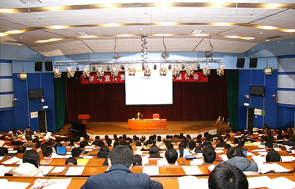 为推动我校十七大精神的学习贯彻,6日下午,学校举行了学习宣传贯彻十七大精神报告会。报告会由校长胡海岩主持。全校处级以上干部,教工、学生和离退休分党委党支部书记,各单位组织员等听取了报告。