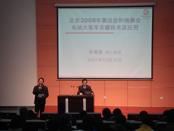 周六,孙校长在良乡校区综合教学楼报告厅做了题为《北京2008年奥运会和残奥会电动大客车关键技术及应用》的专题报告。