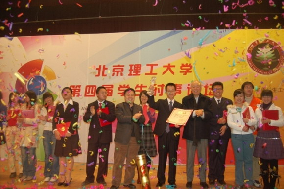 经过激烈角逐,化工学院郝晓明同学力压群雄一举夺得本届时事论坛“坛主”称号。人文学院李艳丽获得了最有深度奖、理学院陈晓燕获得了最有潜质奖、化工学院郝晓明获得了最有人气奖、材料学院陈欣获得了最佳视角奖、材料学院张鹏获得了最具文采奖、管理学院李璐获得了最具表现力奖、理学院何旭获得了最佳风采奖。
