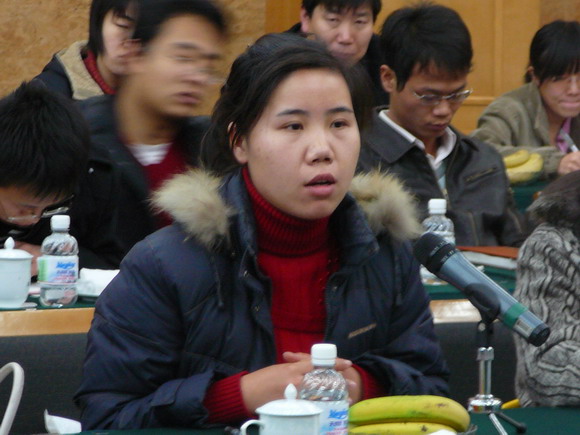 马鸿雁是2006年毕业的法律硕士,任职于南法信镇北法信村,是“顺义区2006-2007年度大学生优秀村官”,曾于2007年初回母校人文学院作过报告。小马说,一年多的“村官”经历,使她明白了什么是真正的“从群众中来,到群众中去”。以前上学的时候她比较崇拜科学家,现在她开始崇拜村里那些一心为群众服务的老干部们。