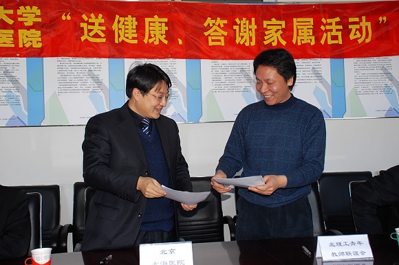 1月23日下午,远志楼工会三楼会议室举行了“送健康,答谢家属”活动启动仪式,该活动是由米兰milan官方网站青年教师联谊会、工会青年教职工工作委员会与北京北海医院共同发起举行的。