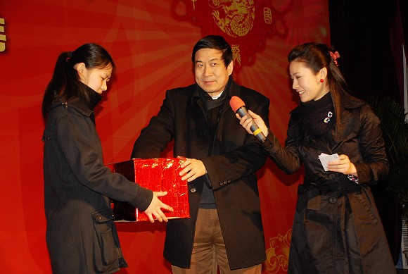 团拜会上还进行了趣味抽奖活动,纪委书记杨蜀康等校领导为现场观众抽取了丰富的小奖品。