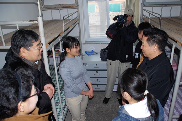 我校党委书记焦文俊、副书记副校长杨宾、副校长赵显利、党委办公室主任王文生、校长办公室主任姚立民、学生工作处处长刘明奇、研究生工作处处长肖文英、总务后勤部副主任宋希博、学生工作处副处长郭彦懿、研究生工作处副处长魏明山等陪同国防科工委领导赴学生宿舍探望了寒假留校学生。