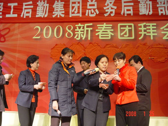 本次晚会的另一大看点就是有着丰富奖品的抽奖活动,奖品覆盖率达到百分之百。每一次的抽奖都掀起了一次小高潮,经过几次紧张的抽奖,最后大奖纷纷落入幸运者手里,对于中奖者来说这应该是鼠年的一个好兆头。节目之后,作为最后的环节,服务于现场的工作人员还为抽到奖的同志们发放各种奖品,使得此次新年欢聚活动更加完美全面。