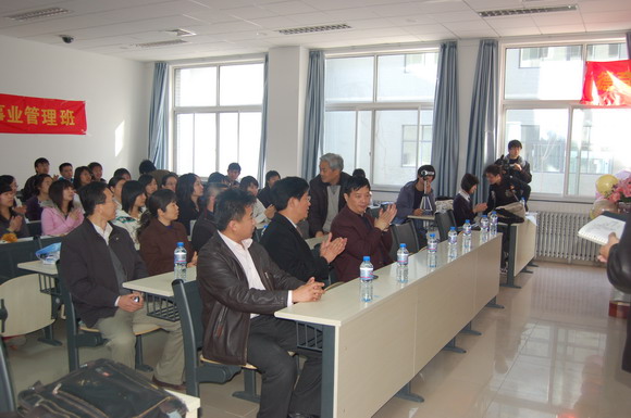 2007级工商管理班是党委学生工作部娄秀红副部长负责联系的班集体,在开题会结束后,娄老师深有感触的进行了点评,她首先用“羡慕、佩服、感动、祝福”八个字表达了自己对这次开题会的体会,接着又用“缘分、分享、见证、珍惜” 八个字对同学们提出了希望。娄老师将自己的联系方式留在了黑板上,让同学们遇到各种问题时都能及时和她取得联系。