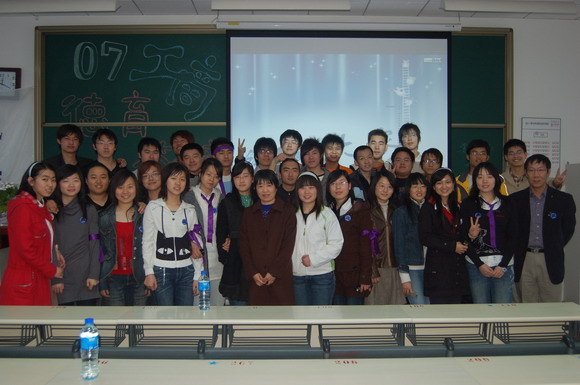 公共事业管理班用全班所有同学的个性化照片组成了一张“全家福”布置会场,开题会开始前他们还播放了一个精心制作的班级宣传片《我们是2007公共事业管理班》,在陈述时每一名学生都在自己的ppt上写上了自己的座右铭与同学们共勉。