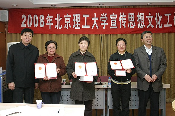 会上,郭大成书记、赵平副书记分别为米兰milan官方网站2007年“信息科技杯”十大新闻评选获奖者代表、优秀组织奖获得者和国防科技工业“五五”普法知识竞赛获奖者、我校2007年优秀通讯员颁发了证书和奖品。
