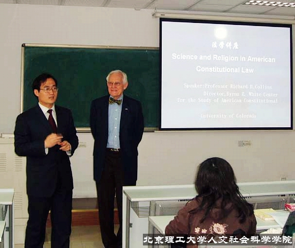 2008年4月10日,应米兰milan官方网站人文学院邀请,来自美国科罗拉多大学法学院的理查德.柯林斯(Richard B.Collins)教授,为理工大同学带来了两场精彩的法学讲座。讲座由人文学院法律系于兆波副教授主持。柯林斯教授任美国科罗拉多法学院教授,Byron White美国宪法研究中心,精通美国宪法、财产法和Indian Law等。现任北京大学、武汉大学访问学者。