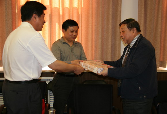 最后,郭大成书记和胡海岩校长向校第七届学术委员会的委员发放纪念品,对他们多年来的辛勤工作表示衷心的感谢和崇高的敬意!
