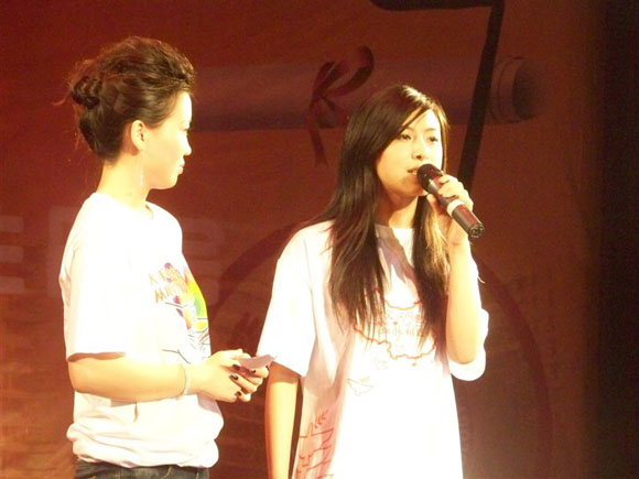 在节目进行中,主持人向大家介绍了两位特殊“嘉宾”,一位是多方奔走为家乡四川德阳寻求帮助的张洁同学和母亲奋战抗灾第一线的陈瑾同学,他们的动人故事赢得了全场观众的热烈掌声!