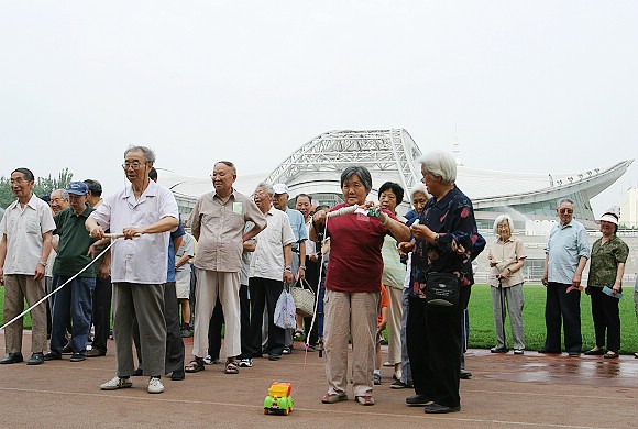 运动会根据老同志的身体情况设:《足球射门》、《走独木桥》、《拉小车》、《托球跑》、《钓鱼》、《投篮》、《投包》等项目,把体育与趣味相结合,受到老同志们的欢迎。