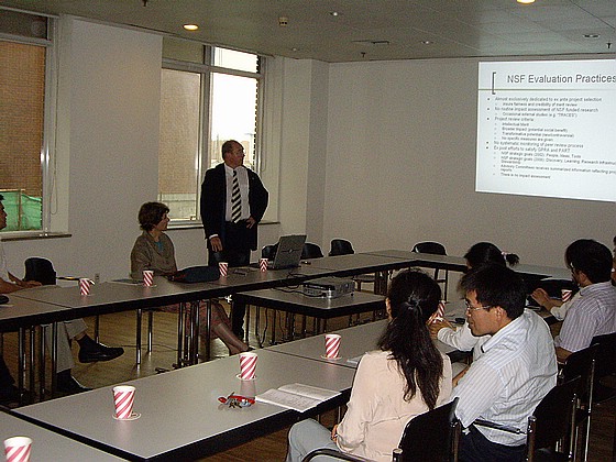 2008年6月17日下午,在国家自然科学基金委员会计划局的邀请下,管理与经济学院刘云教授的陪同来我校访问的美国佐治亚理工大学公共政策学院院长Diana Hicks教授和Juan Rogers教授访问了国家自然科学基金委,并开展有关政府科技计划和科学基金绩效评价的专题研讨。参加此次研讨活动的有国家自然科学基金委员会计划局董尔丹副局长、郑永和处长、陈钟处长、朱蔚彤副处长以及政策局龚旭处长和国际合作局邹立尧处长等,我校管理与经济学院刘云教授及其课题组成员以及中科院科技政策与管理科学研究所樊春良研究员、清华大学科技政策研究所刘立副教授也参加了此次研讨。