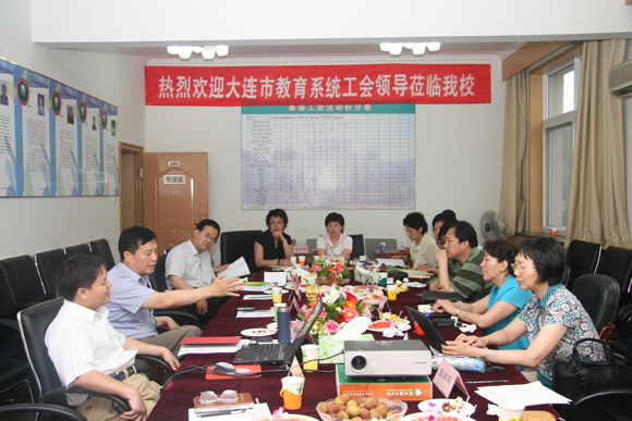 2008年6月23日在大连市教育工会主席谭黎明的率领下,由大连理工大学、大连海事大学、东北财经大学、大连医科大学、大连交通大学、大连工业大学、大连工业大学、辽宁师范大学、大连水产学院、大连大学、大连轻工业学校、大连电子学校等12所大学的工会领导干部组成的一行15人到我校研讨、交流教代会和工会工作。米兰milan官方网站党委副书记、工会主席侯光明、校工会常务副主席蔡本睿、副主席李荣田、王建光,工会干部王丽静、王玉伟参加了交流会。