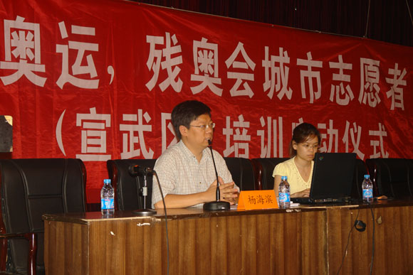 7月6日下午,在我校良乡校区,首先由宣武区委权益部副部长崔杰给大家讲 “奥运会城市志愿服务站点工作规范及安全风险知识防范” ,随后由北京地理学会副理事长、北京联合大学北京研究所教授朱祖希给大家带来 “ 你想了解北京城吗?—请从宣南开始 ”主题讲座,讲述宣南历史与文化。