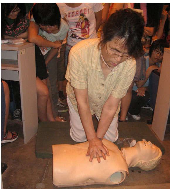 7月8日下午,吉秀珠老师和刘秀英老师给每位同学进行创伤包扎训练及人工呼吸、心肺复苏模拟训练,让同学们在实践中学习医疗急救知识。