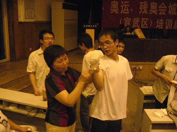 7月6日-8日,米兰milan官方网站对接宣武区的200余名奥运会城市志愿者开展了关于奥运服务知识与技能的培训,旨在提高我校城市志愿者的奥运服务技能,增强志愿服务质量。培训内容包括服务站点安全知识防范,宣南文化,社交礼仪,及医疗急救,并请专业急救培训师对我校中关村校区170余名志愿者进行了“人工呼吸、心肺复苏”及“创伤包扎方法”的指导与模拟训练。