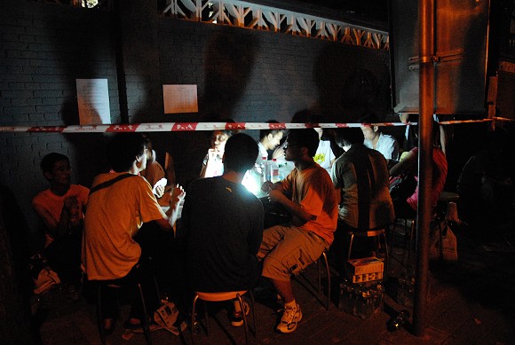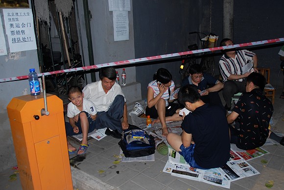 购票者还自带了桌椅板凳和应急灯,准备彻夜等候第二天门票的发售。