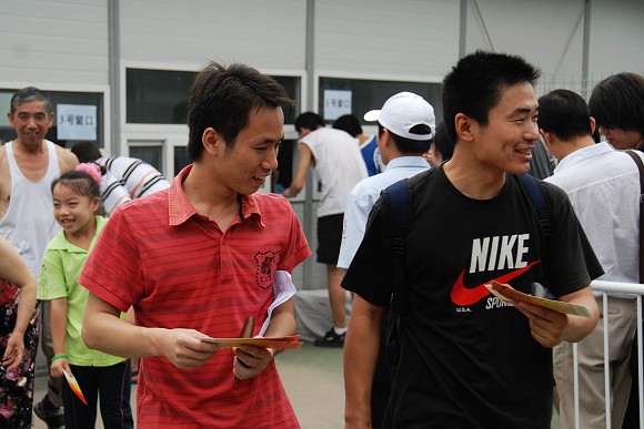 按照奥组委的统一安排,7月25日起,北京2008年奥运会最后的82万余张体育比赛门票开始通过场馆售票亭面向公众发售。从23日开始,一些场馆的售票点前就开始有购票者排队等候了。24下午开始,米兰milan官方网站东侧门外也已经排起了购票长龙,队伍沿着小东门外小路的北墙一直向东延伸,几乎排到了中关村大街。排在第一位的是一个看上去还没有上学的小朋友,他跟着舅舅下午2点就来排队了,他最想买有中国男排那一场的比赛门票。