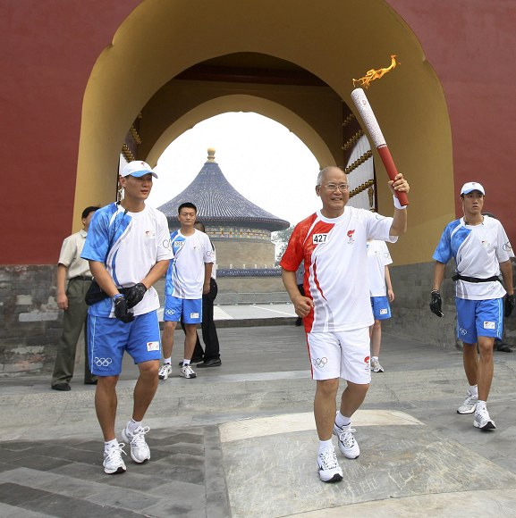 经过层层的选拔,我院学生工作组教师徐彬很荣幸成为一名奥运火炬护跑手。8月6日16时40分左右开始,徐彬护送427至433号火炬手,并于最后跑进天坛。
