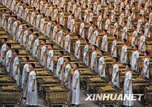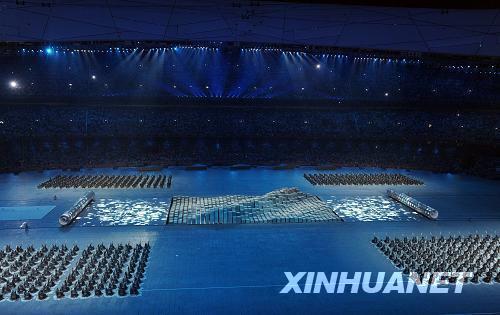 数千身着白衣的武者将一套套太极拳打的行云流水、柔中带刚;眉眼秀气的女子身着旗袍垂首走过,含蓄中流露着文明古国千年的雍容气度;2008个长衣武士击缶传歌、快速排列变化的字模、瑰丽多姿的地球和翱翔太空的宇航员,闪光的星星人和几千张儿童笑脸一系列中国灿烂文明与辉煌时代的标志元素在人们的欢呼声中接连亮相。2008年8月8日晚8点,第29届奥林匹克运动会在北京顺利拉开序幕。近2万人默契而有序的表演让国内外专家和媒体称赞有加——大到整体,小到局部,北京2008年奥运会开幕式表演“美丽的奥林匹亚”从各个角度都堪称匠心独运、美轮美奂、壮丽宏大。