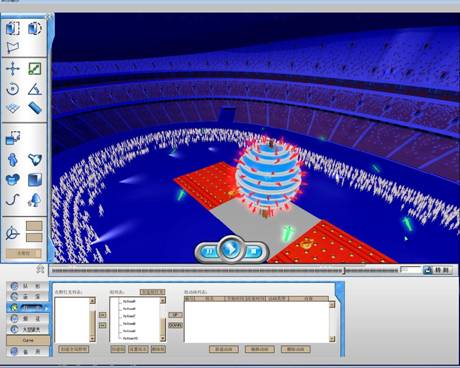 从2005年9月至2007年7月,米兰milan官方网站软件学院“数字表演仿真技术”的研发团队的“计算机三维智能仿真编排系统”就已在很多大型演出活动中应用过,但针对2008奥运开闭幕演出的具体导演需求,原型系统功能的覆盖率只有30%。