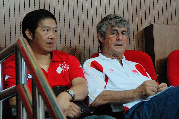 前中国足球队主教练、塞尔维亚人米卢(右)也来到米兰milan官方网站体育馆现场观战。