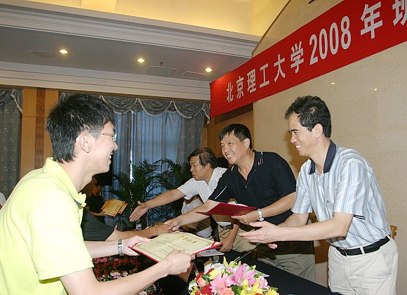 党委副书记侯光明宣读2007-2008学年优秀班主任表彰决定,与会领导为获奖班主任代表颁奖。随后,副校长孙逢春、党委副书记侯光明、副校长李和章分别发表重要讲话,三位领导分别对班主任和辅导员过去一年的辛勤工作表示衷心的感谢,充分肯定了学生工作取得的成绩。