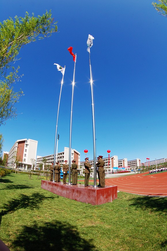 开学典礼在庄严的国歌声中开始。