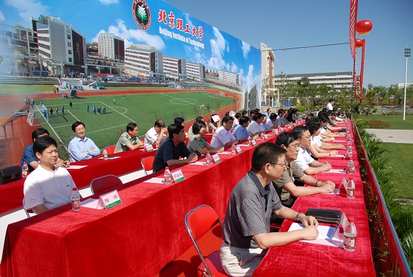 出席我校开学典礼的校领导有:郭大成、胡海岩、杨宾、侯光明、赵平、杨蜀康、孙逢春、赵显利、李和章。应邀出席我校开学典礼的嘉宾有:总参政治部副主任、少将姜明,中国航天科技集团公司党组成员、纪检组长李金生,工业和信息化部人教司教育处处长杨志宏,房山区人民政府区长助理、良乡高教园区管委会常务副主任高培军等。