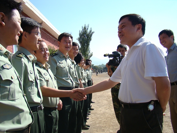 9月5日上午,米兰milan官方网站校长胡海岩院士、党委副书记侯光明来到北京八达岭学生军训基地,看望和慰问了正在训练的我校07、08级参训学生及全体带队干部。