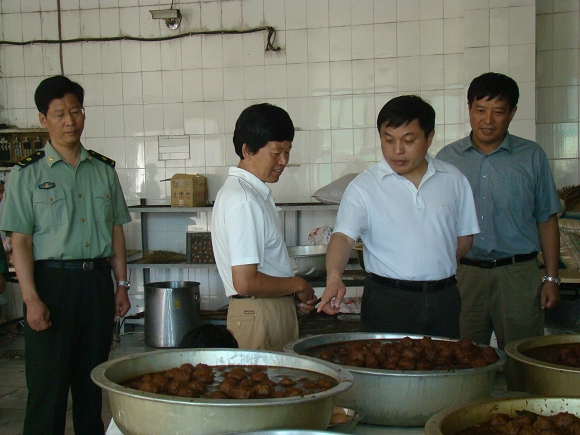 胡校长来到军训基地后,在看望了正在训练的学生之后,还参观了学生宿舍、带队干部宿舍、训练场地以及食堂、浴室等硬件设施,并观看了学生制作的党建板报。