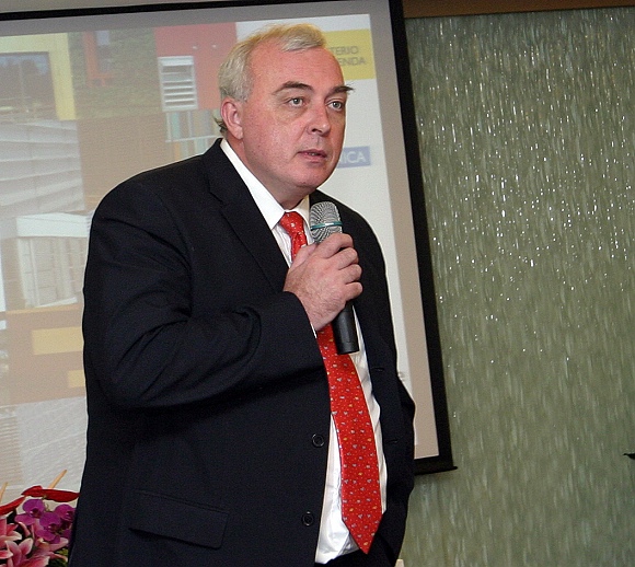 西班牙马德里理工大学校长Javier Uceda致辞,欢迎各高校师生并对我校的精心组织和安排表示感谢,希望中国高校能够积极参与到这项将于2010年在西班牙举行的国际赛事当中。