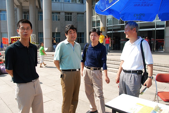 校党委书记郭大成、副校长孙逢春来到报到现场,在各院迎新处、新生报到处仔细询问今年新生报到的情况。