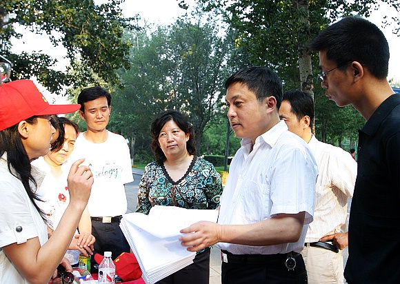 党委副书记侯光明在迎新现场检查工作。