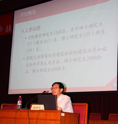 随后,院常务副院长焦清介向同学们详细地介绍了学院的背景及机构设置,对学院的老师及其研究做了大体介绍,使新同学对学院的实力和研究方向有了更深入的了解,便于新同学们能更好地融入将来学习生活中。