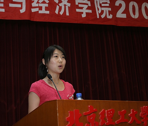 2008级金融专业刘静同学作为新生代表发言。她首先感谢学院各级领导和老师对新生的关心。秋季不仅是一个收获的季节,也是同学们播撒希望的季节,她表示08级研究生会在几年的学术生涯中踏实、进取,努力成为米兰明天的骄傲,成为管理与经济学院明天的自豪。