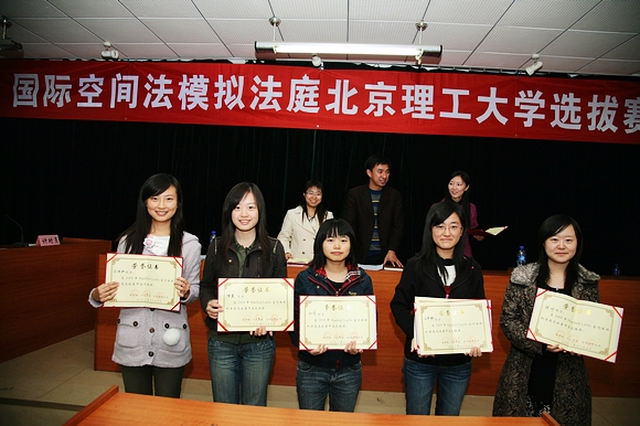 选拔赛法官由李寿平教授、姚艳霞教授和2007年度Manfred Lachs国际空间法模拟法庭国内赛“最佳辩手”奖得主熊哲婷、温馨组成。法官们最终评选出优胜奖6名,最具潜力奖3名,鼓励奖3名。